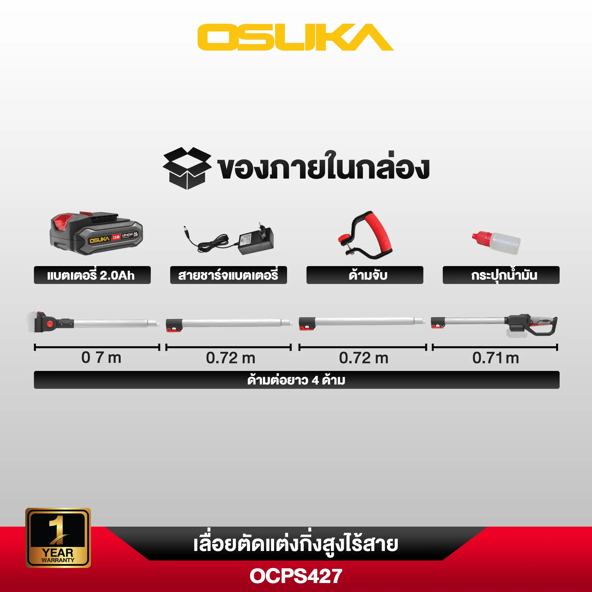 เลื่อยกิ่งไม้สูง OSUKA OCPS427-D1 OCMC432-D1 เลื่อยตัดต้นไม้ เลื่อยโซ่ เลื่อยไร้สาย เลื่อยไฟฟ้า เลื่อยไร้สาย