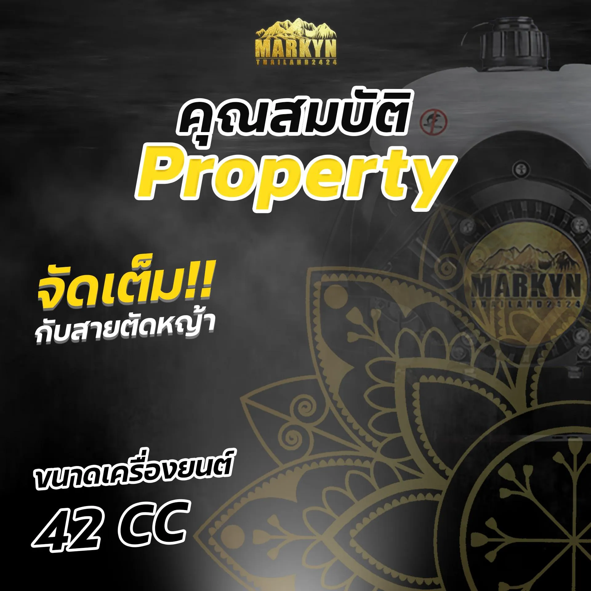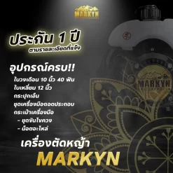 อุปกรณ์ทั้งหมดในกล่อง 1. เครื่องตัดหญ้าสะพายหลัง Markyn รุ่น RBC-411U ตัวเครื่องพร้อมก้าน 2. กระบอกสำหรับผสมน้ำมัน พร้อมถุงไนล่อนอย่างดีสำหรับเก็บอุปกรณ์เสริม 3. ใบมีดตัดหญ้าทรงมะละกอ 4. ด้ามจับและสายสะพาย 5. ประแจหกเหลี่ยม และประแจบ๊อกซ์สำหรับหมุนหัวเทียนเครื่องยนต์ คุณสมบัติ