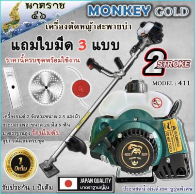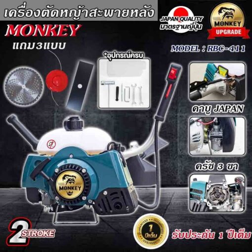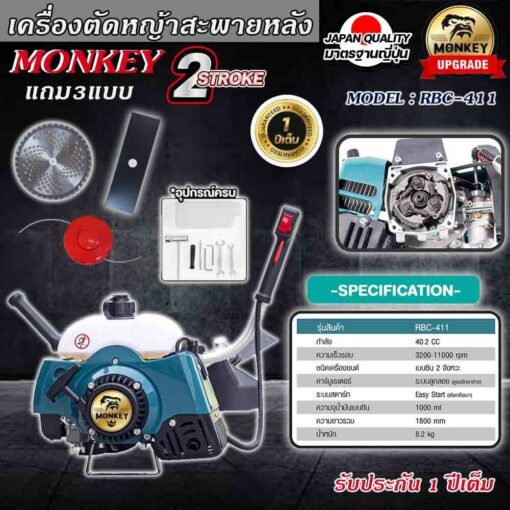ชื่อสินค้า: เครื่องตัดหญ้ารุ่นมังกี้/มังกี้ส้ม/NIPPON RBC-411/BERTO411/เครื่อง 2จังหวะ 42 ซีซี แบบ สะพายบ่า แถมใบมีด3แบบใบวงเดือน/ใบมีดตรง12″และกระปุกเอ็น รับประกัน 1ปี