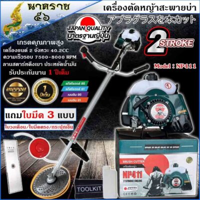 เครื่องตัดหญ้ารุ่นมังกี้/มังกี้ส้ม/NIPPON RBC-411/BERTO411/เครื่อง 2จังหวะ 42 ซีซี แบบ สะพายบ่า แถมใบมีด3แบบใบวงเดือน/ใบมีดตรง12″และกระปุกเอ็น รับประกัน 1ปี